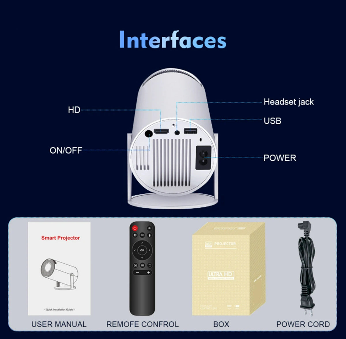 Portable Mini Projector 4K DualWiFi6 Bluetooth BT5.0 Android Home Theater